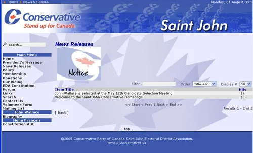 These are screenshots of two web sites I designed for the Conservative EDA. These were templates on a Mambo Core. I have also designed the current site that operates on a Joomla Core.