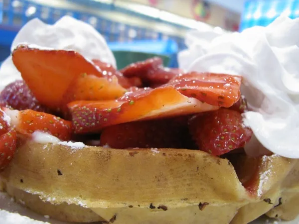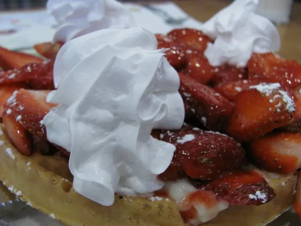 Waffle served with Fresh Strawberries.