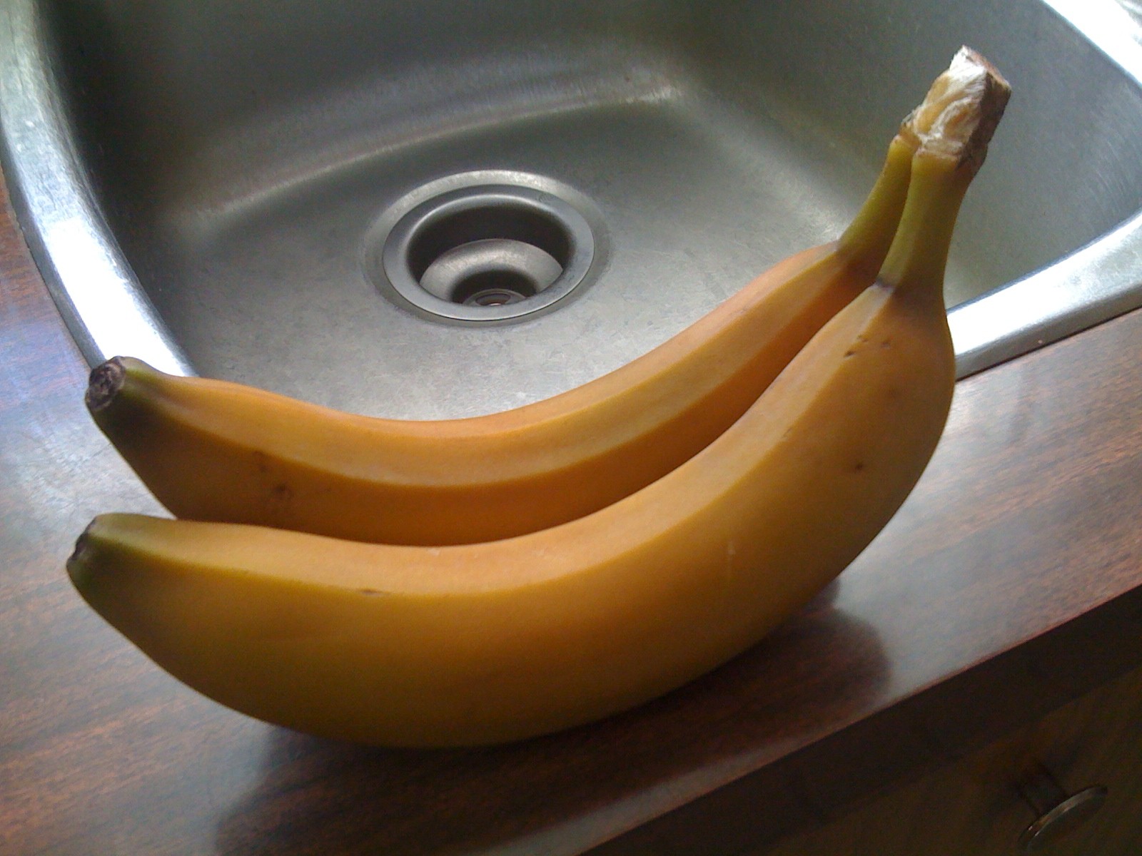 This past week I was reading a new post on my friend Andrea’s blog. Where she posted about making a dairy-free ice cream substitute by pureeing some Bananas. I thought to myself that sounds good especially with the peanut butter they suggest. I also have a can of coconut milk that has sat in the pantry for a while now. In hindsight, it now occurs to me that I never read the directions properly, or at all, as I seem to missed an important step. I bought the bananas last night and took two and put them in the freezer. Now what I am stuck with is two perfectly frozen bananas. I missed the part about peeling and slicing before freezing them solid.
