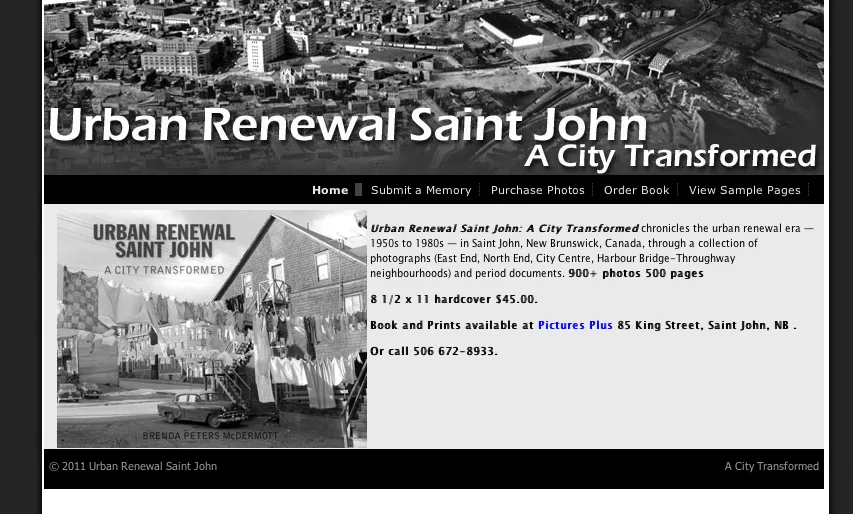 Created for Brenda McDermott to promote and sample her book on the Urban Renewal period of Saint John. The website can still be found at http://www.ursj.ca.